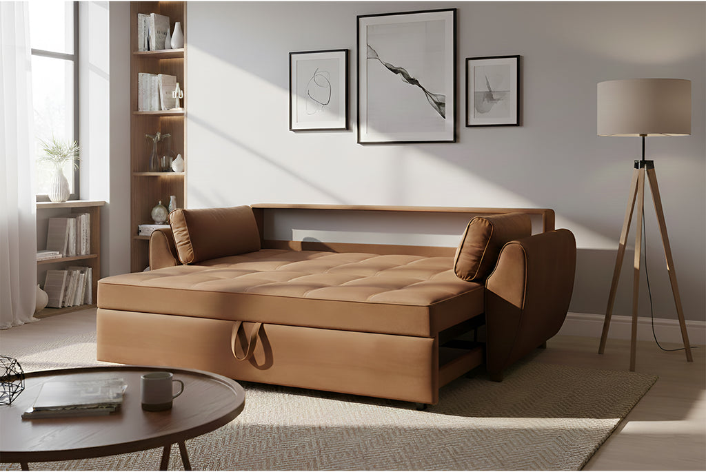 Create a cozy and inviting atmosphere in your home with our comfortable and stylish sofa bed. With its timeless design and meticulous craftsmanship, it complements any decor and adds a touch of elegance to your space.